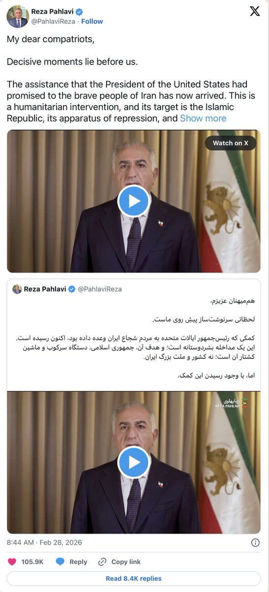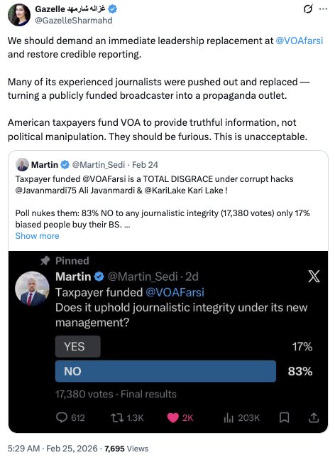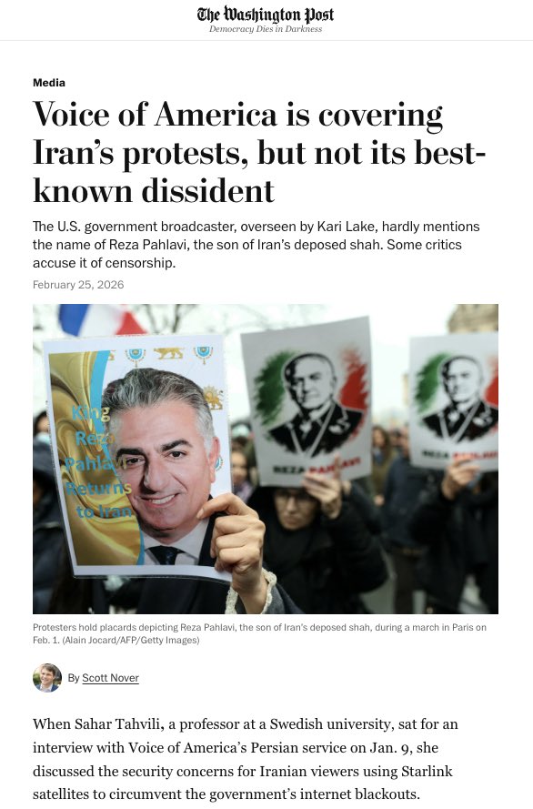 - Voice of America’s Persian service blacks out Iran’s exiled crown prince (en)