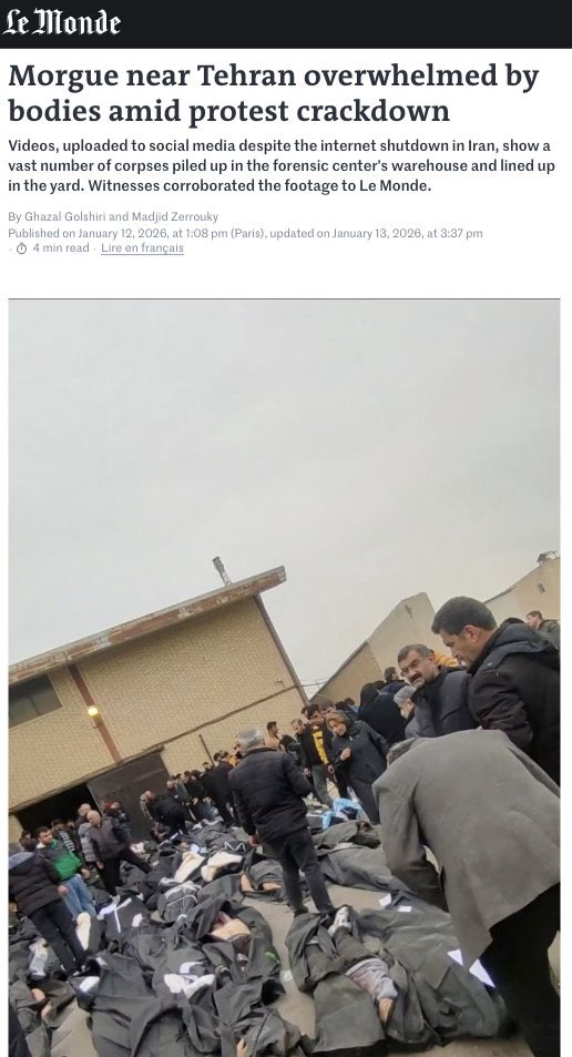 - Morgue near Tehran overwhelmed by bodies amid protest crackdown (en)