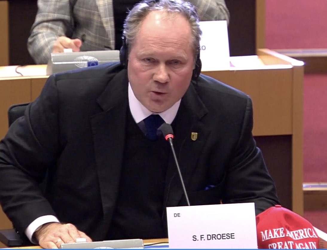 Droese inszeniert sich als Kritiker & nicht als mitwirkender Gestalter der „Pleite-EU“, so wie er sie nennt. Er redet vom „Europaparlament“ (samt Gänsefüßchen) & wettert gegen seinen eigenen SEDE-Ausschuss als „Barbarossa-Ausschuss“. Dafür verdient er € 8.933,86/Monat.