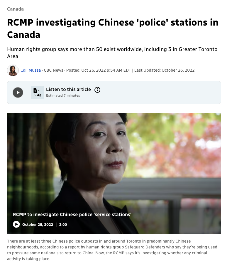 - RCMP investigating Chinese ‘police’ stations in Canada