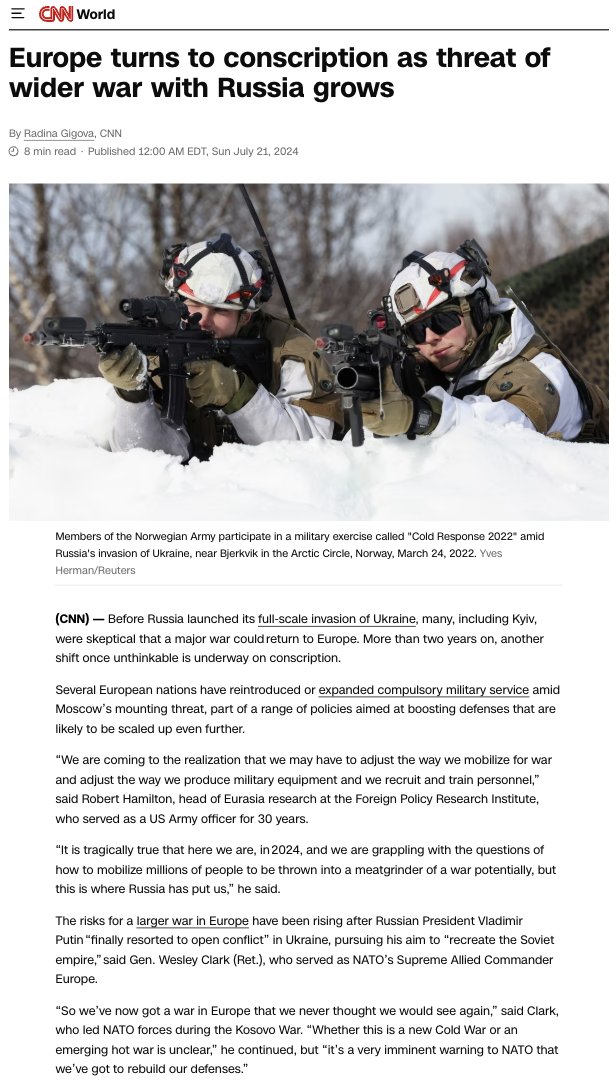 Don’t want Ukrainians or your children to be conscripted in this war or the next one? Then make sure Ukraine gets all the equipment, air defense and air support they need, now.