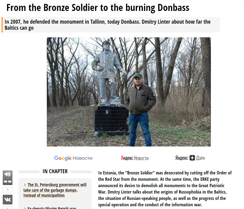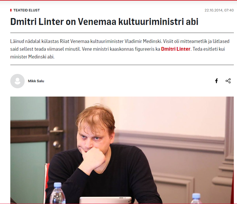 2014. aastaks oli Linterist saanud Venemaa kultuuriministeeriumi delagatsiooni liige. Toona nimetati teda “kultuuriministri abiks”. Ehk pool dekaadi pärast Pronksiööd oli ta tegemas lennukat karjääri Venemaa riigiaparaadis.