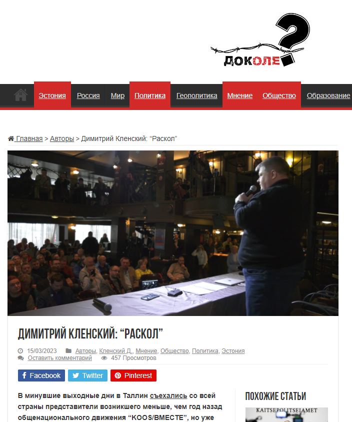 Klenski kirjutab viimasel ajal nii Vene Kool Eestis MTÜ veebilehele Dokole? ja Hantsomi väljaandele Rodina. Mõlema rahastus on seotud otseselt Kremliga.