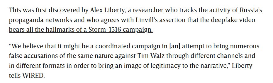 This smear campaign against Harris/Walz originates from John Mark Dougan, a former Florida cop and now Moscow resident who runs a massive network of AI-generated fake news websites. Dougan’s also behind most of the anti-Zelenskyy campaigns online: