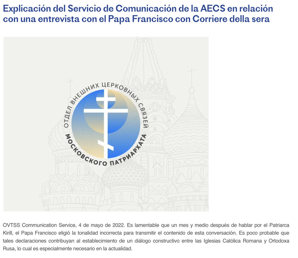 Sin embargo, esta crítica está ausente en el informe publicado después de la entrevista, y fue negada de inmediato y con vehemencia por Cirilo. Las declaraciones papales que repiten los discursos vatnik, en cambio, son recicladas por la maquinaria de propaganda de Moscú. 26/34