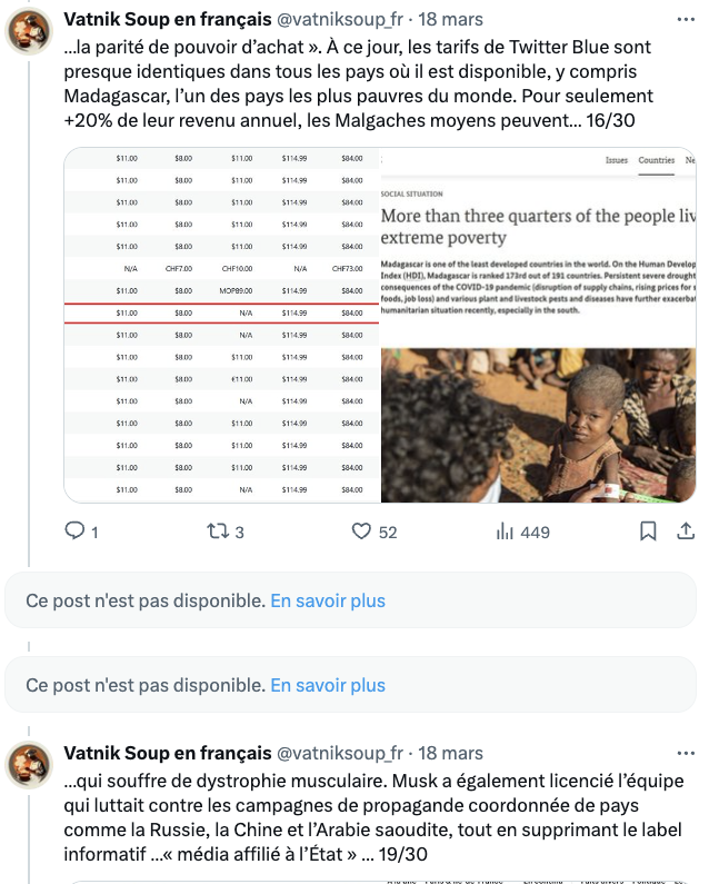 …des opérateurs de drones russes et les empoisonnements des Skripal. Naturellement, ce bon travail leur a valu la haine des vatniks comme @aaronjmate. Après que Musk a introduit le service d’abonnement payant sur X, l’un de ses premiers abonnements…13/34