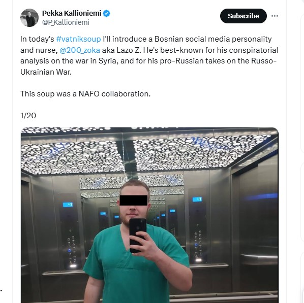Enkele dagen later publiceerden we ons onderzoek naar Lazo Z ofwel @200_zoka, een pro Kremlin account gerund door Bosnische Servier